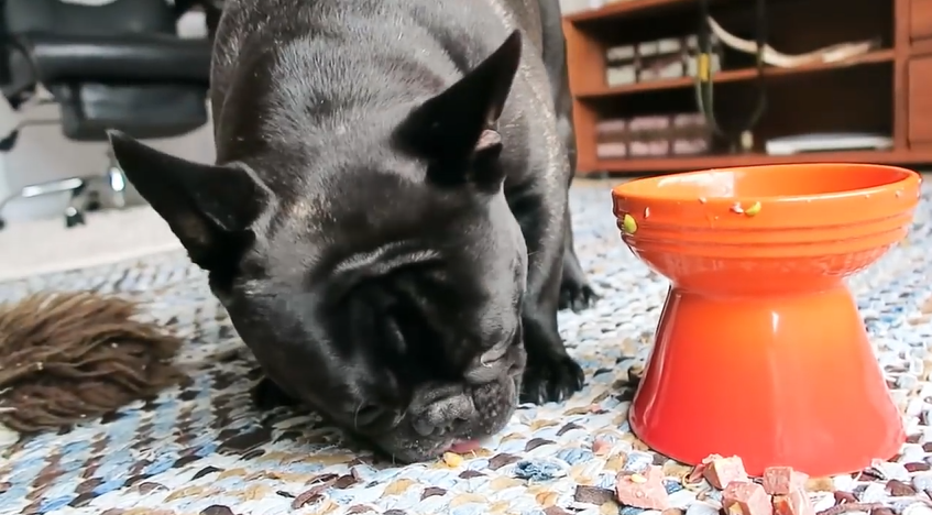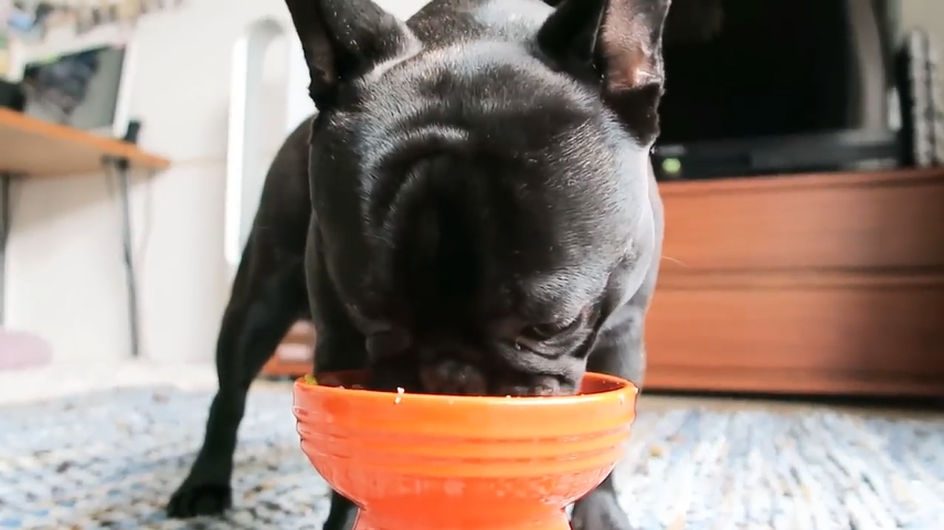 「ごはんだよ!」と呼ぶと元気に走ってくるんですが、ドッグフードを見た瞬間に明らかにテンションダウン。