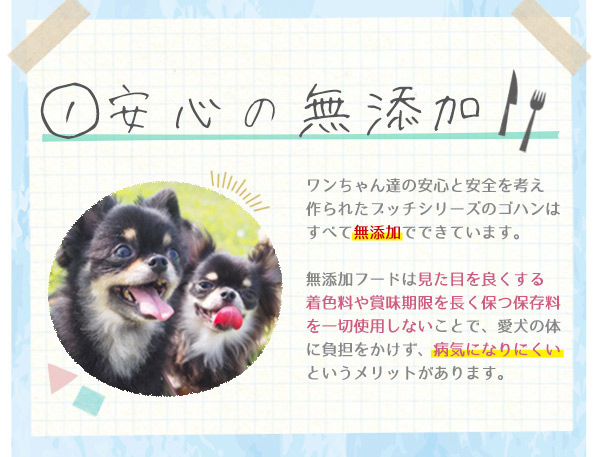 さらに、ブッチは愛犬に安心して食べてもらえる、安全性も大きな魅力です。