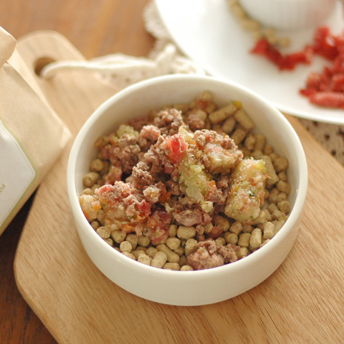 また、生肉と同じ水分量70%で口当たりが柔らかく、カリカリのドッグフードよりお肉の風味がたっぷり残っていることも、ワンちゃんの食欲を高めてくれています。