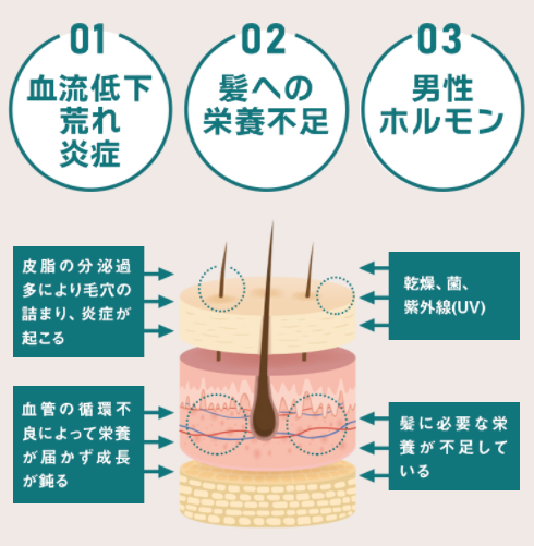 AGAが進行する主な原因は3つあります。