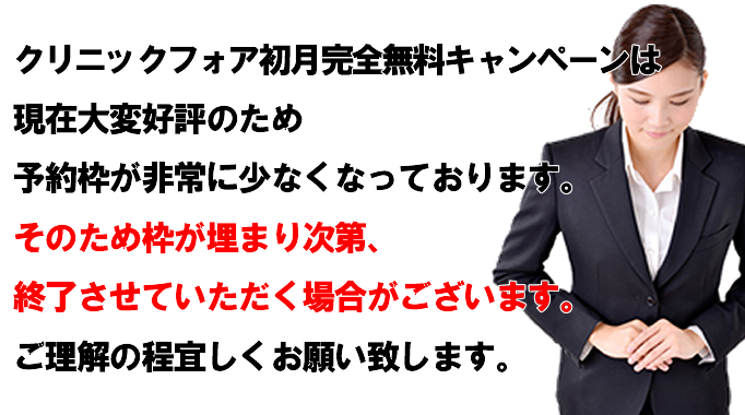現在、クリニックフォアは予約が殺到して、一時予約がストップしてしまっていたそうですが復旧したそうです!