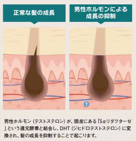 ・男性ホルモンによる髪の成長の抑制