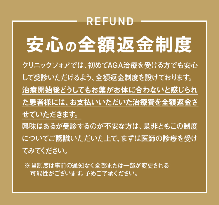 クリニックフォアはもしお薬が体に合わないという方のために、安心の全額返金制度も付いているんです!