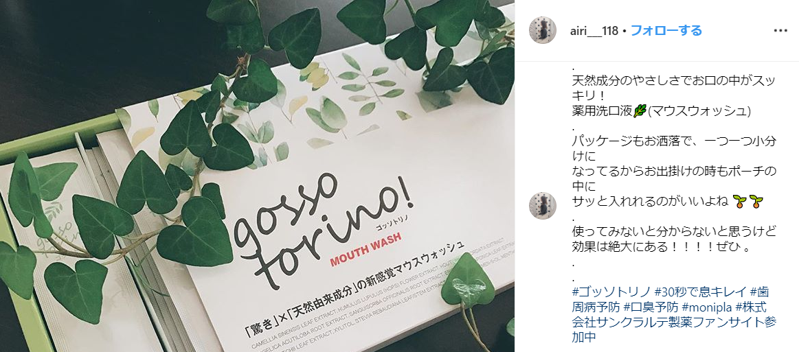 私個人としては、ゴッソトリノを使いだして本当に良かったと思ってます。たったの1日100円で口臭がしっかり予防できるなら良いですよね!