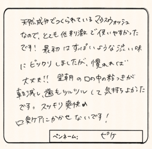 その口臭ケアというのが、福岡の製薬会社が長年研究して開発した「マウスウォッシュ」を使ったケアなんです。これを初めて使ったときは本当に衝撃でした…