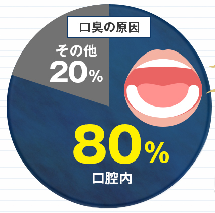 厚生労働省が発表しているデータによると、口臭の原因は80%(※2)が口腔内にあると発表されています。