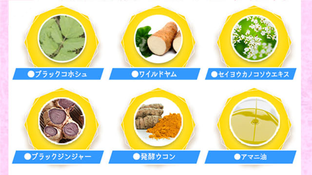 女性ホルモンを活性化させる成分がギュギュっと配合されているのがわかりますね。
