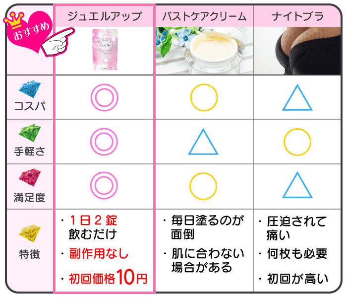 こう比較すると、ジュエルアップって飲むだけだしコスパの良さスゴくないですか?