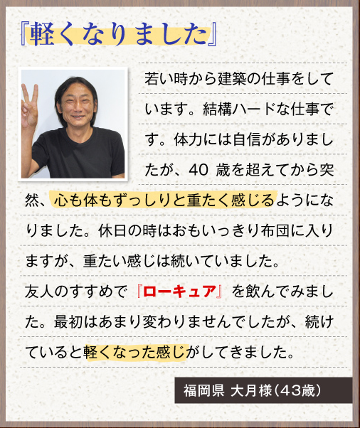 このローキュアを1日たったの2粒飲むだけで、体の調子の差は明らかです!