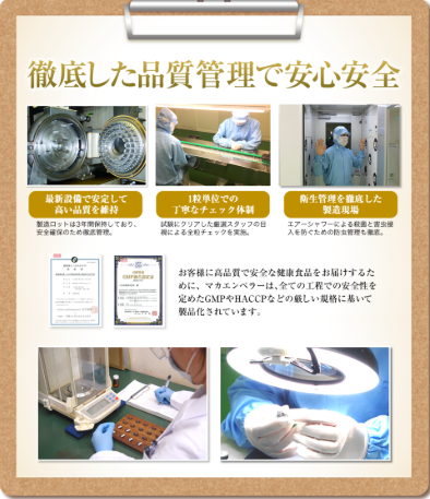 マカエンペラーはGMP・HACCP・有機JASの認定を取得している国内工場で一貫製造されているので、安全安心です!