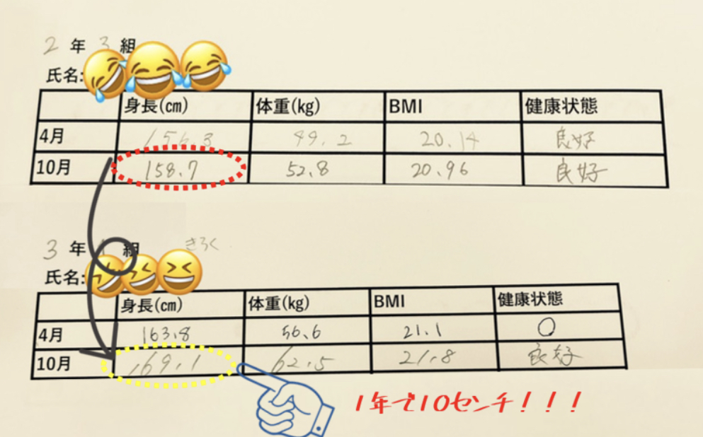 周りと差が開いていく身長は、どうにもなりませんでした。。