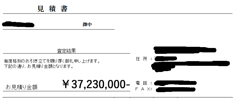 3723万円!!!買った時の金額より500万以上も高く査定結果が出ました。