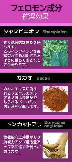 このフェロモン成分は女性を引き寄せ、エロくする催淫効果があるんです!