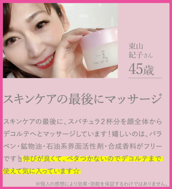 スパチュラで適量を取って顔全体に馴染ませるだけ!