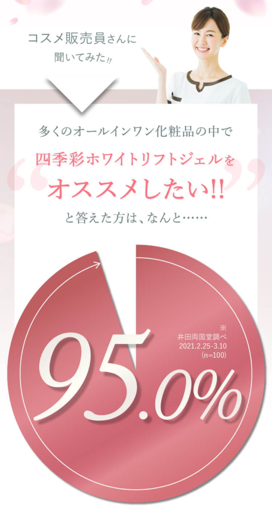 コスメ販売員の95%がオススメしたい!と答えていて