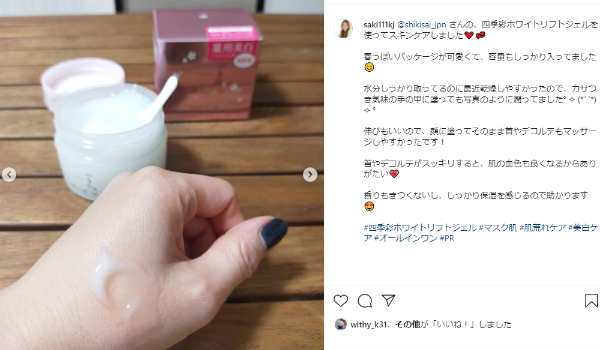 実はこの四季彩ホワイトリフトジェル、インスタで超バズってました(泣)